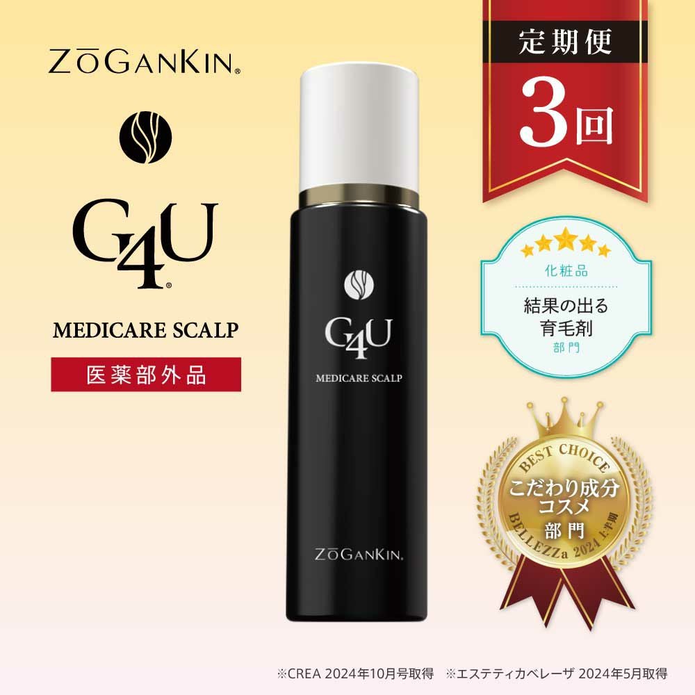 他の画像を見る 【ZOGANKIN】G4U メディケア スカルプ 【医薬部外品】薬用ヘアケアローション 4つの有効成分が頭皮環境を整え血行を促進。育毛、脱毛予防などに効果的。こだわりの国産卵殻膜エキスを配合。 【ZOGANKIN】 (定期購入) G4Uメディケアスカルプ 送料無料 定期販売 定期便 1回あたり ¥ 4,851 税込 詳細を見る お気に入りに登録する