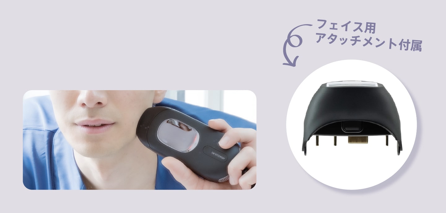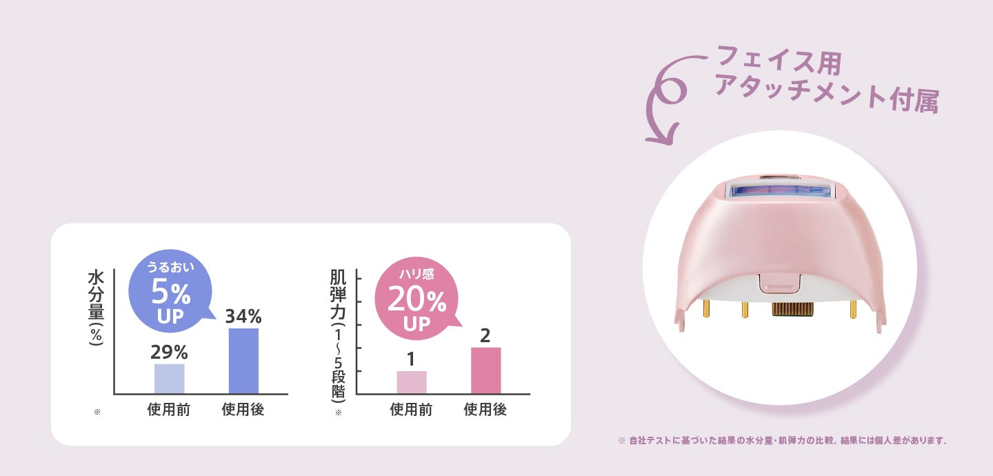 フェイス用の付属アタッチメントで美肌ケアも。うるおい、ハリ感にアプローチする波長に着目。光美容で弾力のあるハリツヤ肌に。