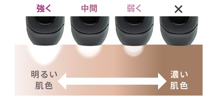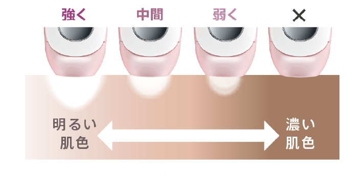 プロの代わりに肌色に合わせた照射レベルを自動調整するオートモードを搭載。部位ごとに自分でレベル切り替えをする手間なく、全身最適な照射を行うことができます。